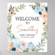 Blue Autumn Flowers Pumpkin Baby Shower Welcome Poster