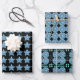 Blue Baby Alien Stars and Planets Patterns Wrapping Paper Sheet