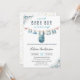 Celebrate the upcoming arrival of a sweet baby boy with this charming baby shower invitation. Featuring adorable watercolor baby clothes hanging on a clothesline with soft blue florals, this design is both playful and elegant. Perfect for honouring parents-to-be, this customisable invitation includes space for event details, RSVP information, and gift registry notes. A beautiful choice for a classic and heartwarming baby shower celebration.