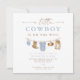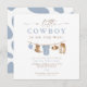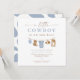 The Clint Little Cowboy baby shower collection features adorable watercolor baby rodeo clothes hanging on a line paired with a fun script font and dusty blue colour. This collection is perfect for your ranch or rodeo themed baby event.