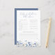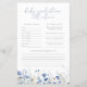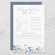 Add a heartfelt touch to your baby in bloom baby shower with this Blue Baby In Bloom Baby Predictions and Advice Game—a cute and meaningful way to involve your guests! Designed with soft blue, floral, and wildflowers elements, this charming advice card doubles as a keepsake for the parents-to-be. Guests can share their best wishes and funny or thoughtful guesses in this engaging baby predictions game, creating lasting memories during your baby shower. A perfect addition to your collection of baby shower games, it beautifully complements your baby in bloom theme.