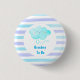 Blue Baby Shower Grandma To Be Button with blue and purple stripes on white background and cute blue cloud.