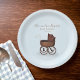 Celebrate the mummy-to-be with these custom disposable plates, perfect for a boy baby shower! Featuring a blue cute watercolor design with a charming vintage carriage, these stylish party supplies add a timeless touch to your celebration. The simple calligraphy script and elegant typography enhance the classic babies nursery theme, bringing a traditional design that is both sophisticated and adorable. Make your event extra special with these elegant and practical tableware essentials!