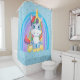 Blue Baby Unicorn on Rainbow Shower Curtain