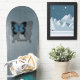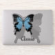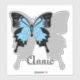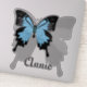Blue backed butterfly with the wing spread flying over its shadow. Within the shadow a space for a name, "Annie" and can be personalised for your own.