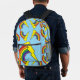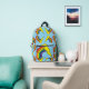 Go back to school in style with this rainbow and lightning bolt print backpack. Fun book bag features colourful rainbows emerging from yellow lighting bolts against a light blue background , with black details. Original digital artwork by Buttercup's Clothing and Collectables.