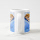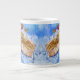 On this wonderful large mug is a watercolor of a crispy french baguette with 2 strawberries on a blue art texture background. Text reads "Le Cafe" and "Du Pain". Which means coffee and some bread. Edit the text to create your own personalised mug.