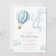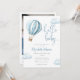 This charming baby shower invitation features a cute blue hot air balloon and clouds, along with elegant script typography. With your registry QR code and special photo on the reverse. Designed by Thisisnotme©