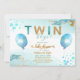Blue Balloon Gold Twin Boy Baby Shower Invitation