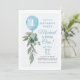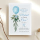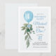 Eucalyptus Greenery Blue Balloon Boy First Birthday Invitation.