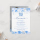 This elegant Quinceañera invitation features sparkling glitter balloons in various shades of blue, silver and white. Falling streamers and confetti in blue and white complete the party vibe. Back features your favourite photo. Easy to customise by clicking "Personalise".