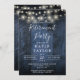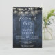 This rustic blue barn wood string lights retirement party invitation can be personalised with your party information in modern typography. Designed by Thisisnotme©