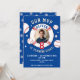 Blue Baseball Ball Themed Birthday Party Photo Invitation. Hit a home run with this personalised baseball birthday invitation — perfect for your little MVP’s big day! Fun baseball-themed design with red stitching details. Personalised with your child’s photo, name, and age. Great for boys or girls who love sports. Customisable text for party details and RSVP info. Matches with baseball party décor and favours in the collection.