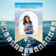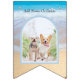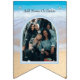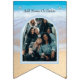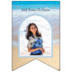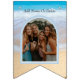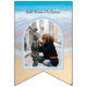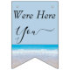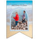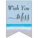Chic Dusty Blue Beach Wedding Bunting Flags with photo frame and script for those who can not attend the wedding. It features a Photo Arch Frame a text template for the name and a chic blue ocean background