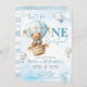Blue Bear Hot Air Balloon Boys 1st Birthday Invitation