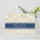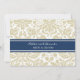Custom rehearsal dinner party invitations in modern and elegant tan taupe sand brown, dark navy blue and white chic and classic floral damask vintage pattern. Personalise the text to create a unique invitation for your wedding rehearsal dinner. Contact us to request a colour change. Available in many matching wedding products.