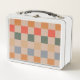 Blue Beige Orange Brown Chequered Gingham Pattern Metal Lunch Box