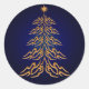 Get into the holiday spirit with these beautiful gold bell tree stickers with a blue background.