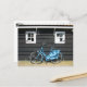 Blue Bicycle Dutch House in Holland Postcard. A blue ladies bicycle parked at a typical Dutch wooden house with two windows postcard. This great Dutch bikes postcard is fully customisable, add your texts and images!