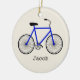 An ornament featuring an illustration of a blue bicycle. Personalise with your name under bike.