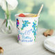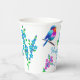 Birthday party paper cups with a cute little birdie and forget-me-not flowers designed paper cup for your friend's birthday who is a bird or garden lover. Forget me not flowers and colourful birds surround the happy birthday text that you can customise. The charming little forget-me-not flower is loved all over the world. Its tiny, bright blue and pink flowers give a special meaning to these paper cups. The little bird was hand painted with bright blue and pink colours to complement the forget-me-not florals. Shop our store for more gifts and party decorations with this special design.