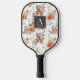 This cute pickleball paddle features a monogram and your name/text on a white background with a blue bird and pink floral patterns. Personalise it for your needs.