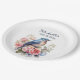 Elegant blue bird and pink watercolor flowers 75th birthday party paper plates. Personalised with the name of the guest of honour and her age. Contact me for assistance with your customisations or to request additional matching or coordinating Zazzle products for your celebration.