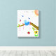 A sweet design featuring a whimsical blue bird resting on a tree branch. Flowers and nature accent it. This design is best suited for an 8x10 or 11x14 size of canvas.