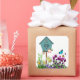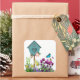 This blue birdhouse sticker features a flower garden, butterflies, and space for your monogram. Stickers have many uses. correspondences, gift bags or scrapbooking and more.
