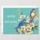 GIVE SOMEONE THIS SPECIAL HAPPY BIRTHDAY CARD WITH A PAIR OF BLUE BIRDS ON A BRANCH OF WHITE AND GREEN FLORAL WITH A LIGHT BLUE BACK GROUND