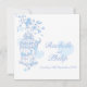 Cute bird couple in line art graphic drawing of open bird cage hanging from a blossoming spring tree with hearts. Fashionable modern chic wedding design part of the the bird cage romantic wedding stationary set. Pretty pastel shades blue and aqua on a white background colour. Edit this invitation with your own name, dates and words. Unique drawing and design by Sarah Trett.