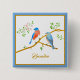 A button with an image of a female and male bluebird. The background, image and text can be personalised. Original artwork by W.B.