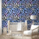 Blue black abstract leaves pattern Wallpaper.Refresh your space with this beautiful blue and black leaves pattern wallpaper. Perfect for a kitchen backsplash, bathroom and more.