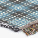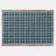 Throw blanket with the family tartan pattern for Clan Clark. Scottish plaid in bright blue, black, and white.
