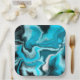 Blue, Black and White Marble Fluid Art Paper Plate