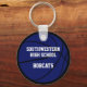 This cool basketball themed keychain features the realistic image of a basketball that has alternating blue, white and black recolored panels on the front and a simple blue basketball shape on the back - easily personalise with player name & jersey number on the front and school or club name & mascot name on the back - by katz_d_zynes