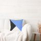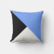 Cool diagonal colour block pattern pillow in black, white and soft sky blue.