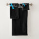 Blue Black Girly Script Monogram Name Bath Towel Set