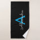 Blue Black Girly Script Monogram Name Modern Bath Towel