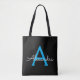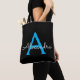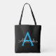 Blue Black Girly Script Monogram Name Modern Tote Bag