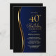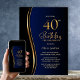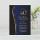 Blue Black Gold 40th Birthday Party Invitation