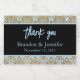 Chic wedding mini sparkling wine or wine labels ready for you to personalise with your own information. Elegant light blue with gold damask pattern decorates the top and bottom of this black horizontal label. Personalise the text for your wedding reception. Great for your wedding reception table or guest favours.