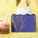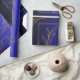 This wrapping paper showcases a modern and minimalist botanical design, featuring delicate gold leaf outlines framed within geometric borders. Set against a rich dual-tone blue and black gradient background, the intricate gold accents add a touch of sophistication and luxury. The ornamental flourishes in the corners enhance the regal feel of the design, making it perfect for formal occasions, luxury gifts, or elegant celebrations. The contrast of the bold background with the fine gold detailing creates a striking visual effect, ideal for those seeking understated elegance.