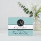 Elegant, Simple, Blue, Black and White Monogram Modern Save the Date Postcards. Elke Clarke © These wedding announcement postcards are shown with a light blue background, white monogram initial on a black circle tag and bride and groom names on a black and white stripe. Customise with bride and groom names and your wedding announcement text, monogram initial, and wedding date using Zazzle's easy to use menu prompts. This simple yet elegant monogram initial design works for all letters of the alphabet and is fully customisable. For other colour combinations please contact luxuryweddinginvitations@gmail.com