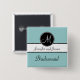 Blue Black Monogram Wedding Bridesmaid Button