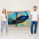 Blue Black Raven, blue and gold abstract Throw Blanket