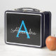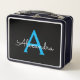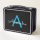 Blue Black Script Girly Monogram Name Metal Lunch Box