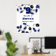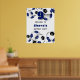 This soccer themed birthday party welcome poster is fully customisable and features randomly arranged blue, black and white soccer balls that are selectively shadowed to give a unique 3D appearance - personalise your custom message and the child's age, or customise the text to suit your event - by katz_d_zynes