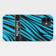 Cute and trendy teal blue and black zebra stripe print pattern with custom name. Add your own personal touch when you customise your full name or monogram initials on the black and white nameplate. Cool personalised gift for girly girls and ladies that love jungle animal prints in funky fun colours.