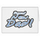 Blue text outlined with black on Proud New Dad T-shirts, mugs, tote bags, buttons, and other proud new dad items!